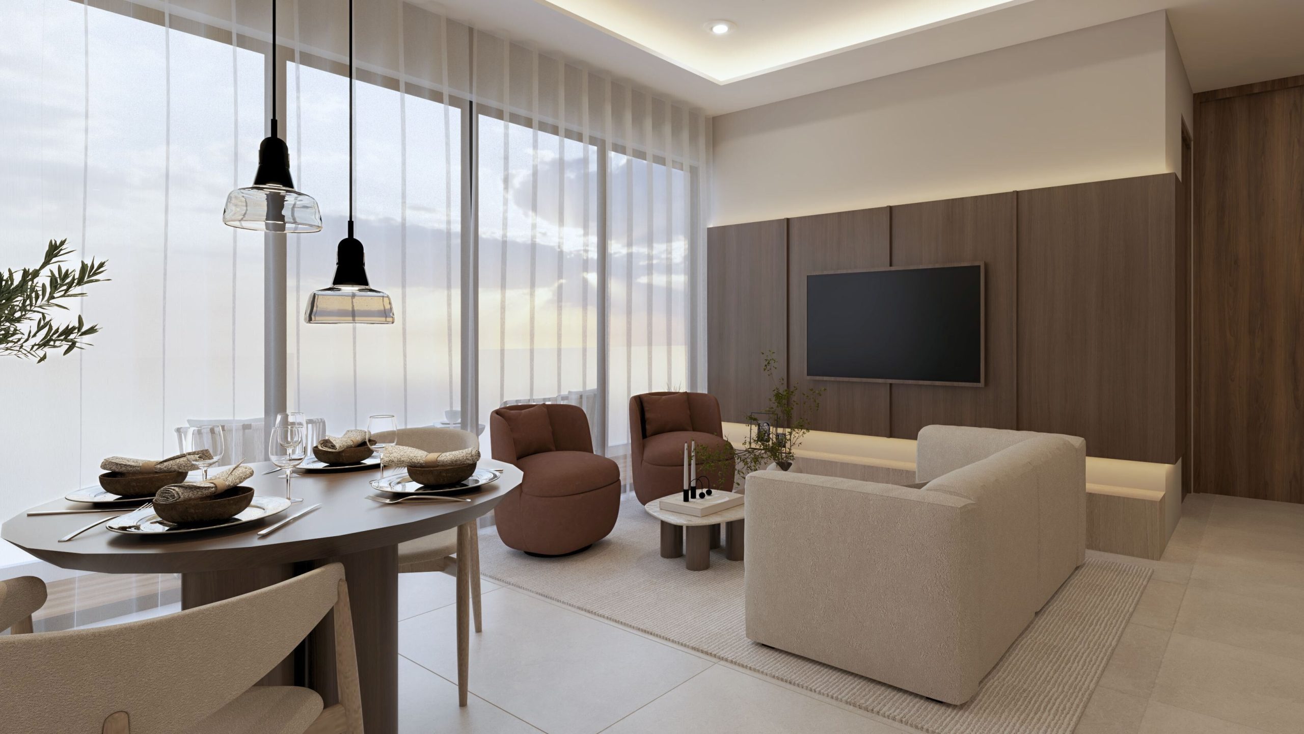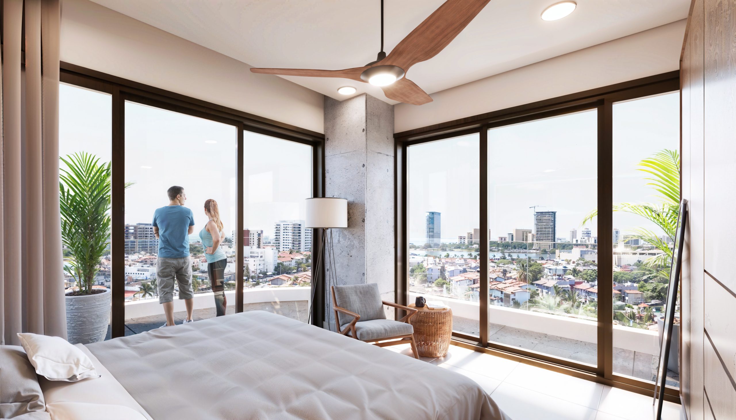 Con un equilibrio entre mar, ciudad y montaña, ofrece un entorno que se siente tanto íntimo como conectado. Asimismo, la integración del desarrollo dentro de una plaza comercial refuerza esta lectura contemporánea del habitar.
