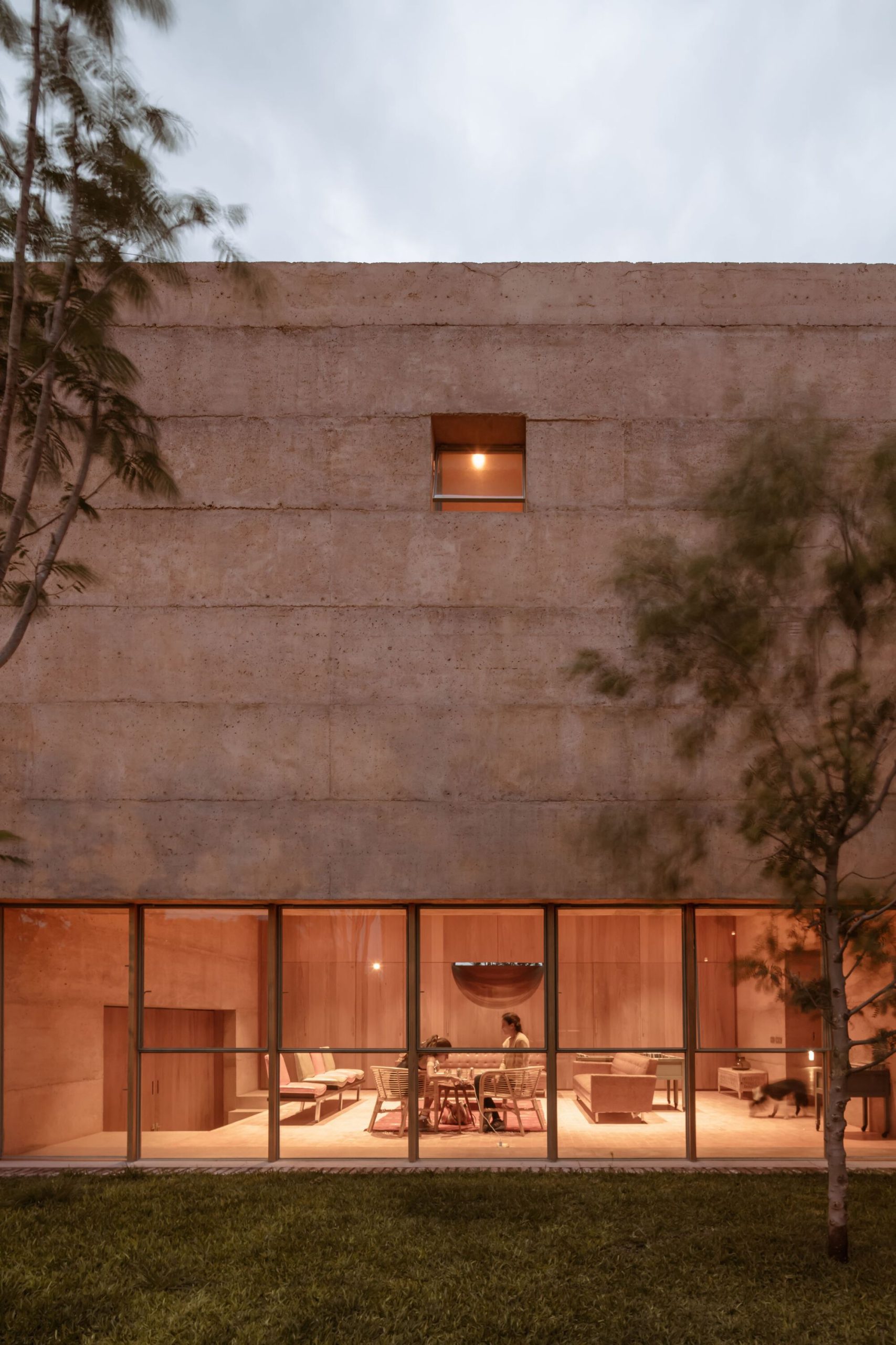 La estructura se conforma a partir de elementos de concreto armado que componen los volúmenes principales. Los gruesos muros se levantan en capas vertidas cada 80 centímetros. Esta modulación rige la altura y modulación de entrepisos, vanos y diversos detalles a lo largo de la casa. La rigidez ortogonal de los volúmenes se suaviza con detalles curvos que provocan una relación más sensible hacia la geometría espacial.