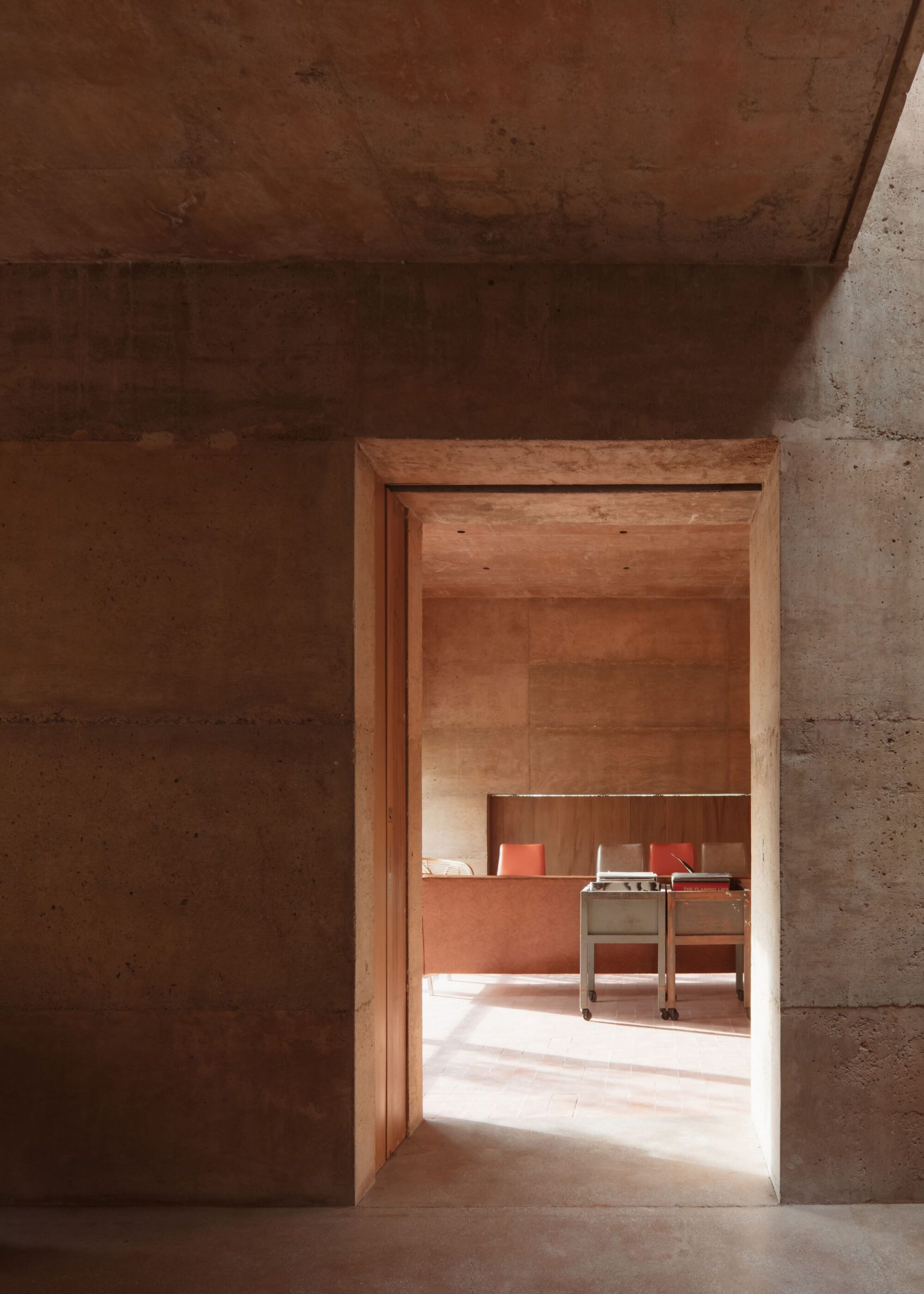La calidez y la sencillez en el espacio tanto interior como exterior son una constante en el ambiente de la casa. El concreto pigmentado en sus tonalidades color tepetate otorgan un carácter acogedor a los espacios que envuelve, haciendo juego con la luz natural y el paisaje. El uso de materiales discretos provoca que la luz y el espacio mismo sean los protagonistas de la casa. Sin embargo, detalles elementales como la madera sólida en muebles y cancelería de herrería; así como pisos de tabique y mosaicos de pasta, complementan esta sensación de serenidad que transmiten los espacios.