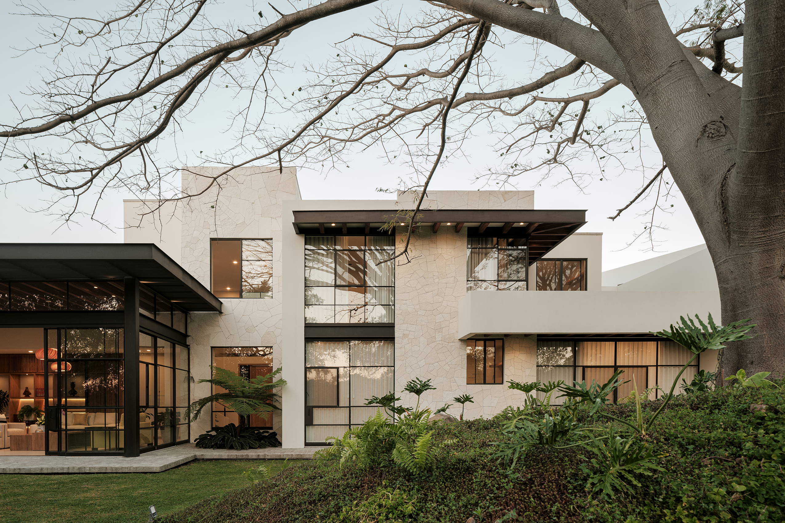 En entrevista exclusiva con México DESIGN, Matia Di Frenna nos compartió que el punto de partida del proyecto fue una impresión poderosa: el silencio, la luz filtrada y una majestuosa parota que reinaba en el terreno. “La parota fue nuestra guía desde el principio. No la vimos como un obstáculo, sino como el alma del lugar”, nos comenta. Desde ahí, el diseño se articuló con respeto y sensibilidad, desplegando los espacios en una planta lineal que favorece la conexión visual y espiritual con el entorno.