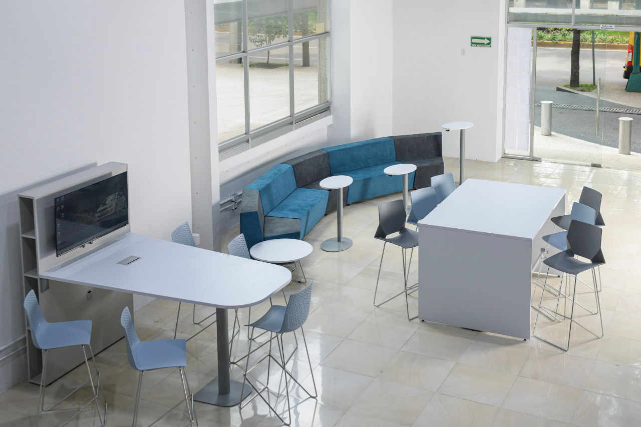 La conectividad integrada en estaciones de trabajo, mesas de reunión y áreas colaborativas permite que el espacio mantenga orden visual, así como flexibilidad técnica. De tal manera que, cuando la electrificación forma parte del diseño, el crecimiento tecnológico no implica rediseños constantes.
