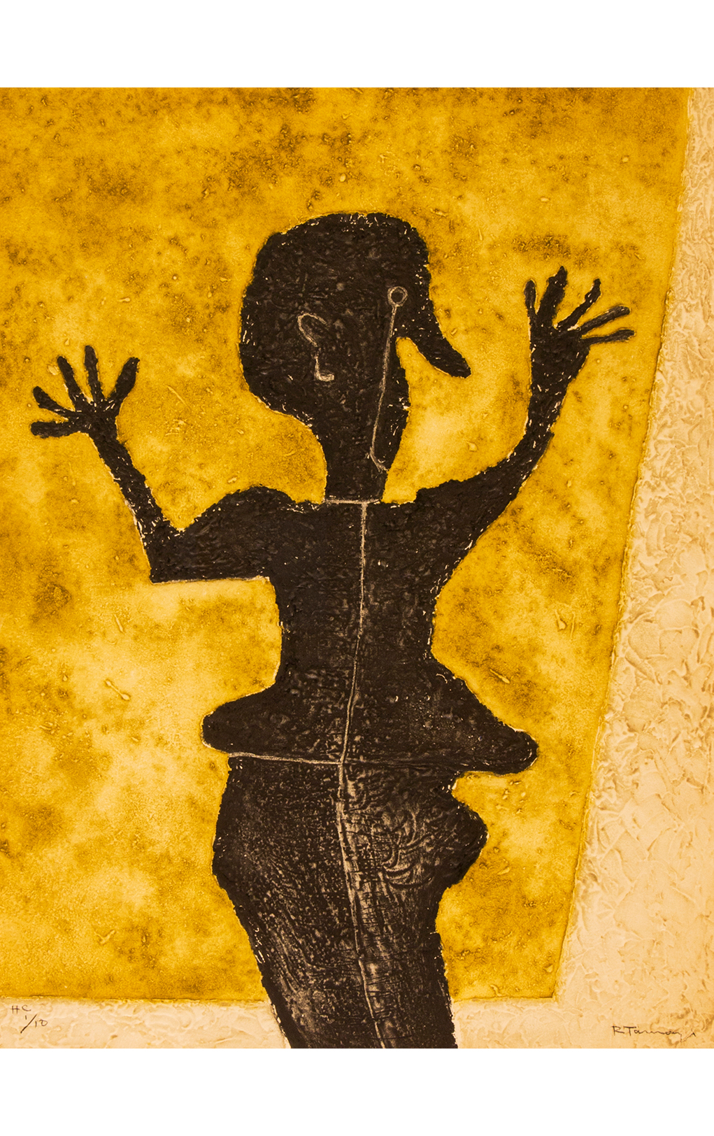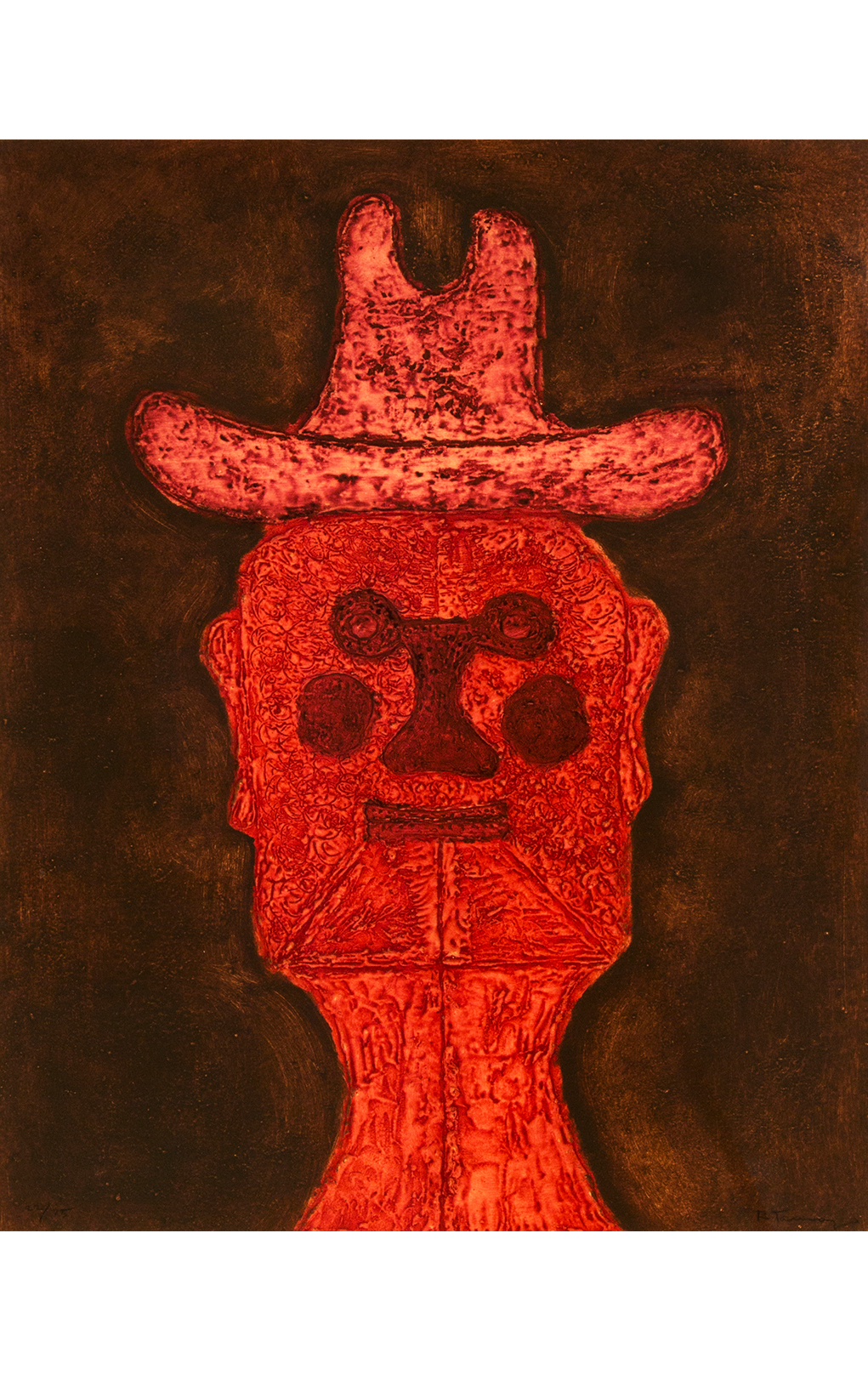 Si se ve con atención, en esa obra están presentes lo mismo la herencia popular e indígena del artista que su deslumbramiento ante la vanguardia europea. En este caso el expresionismo alemán, esa fuerza expresiva, es el ingrediente inasible con que Tamayo salva a esa pieza de ser una obra artesanal, o una estampa devocional, aunque también lo artesanal es un valor visible no solo en este grabado, sino en toda su producción de obra gráfica.