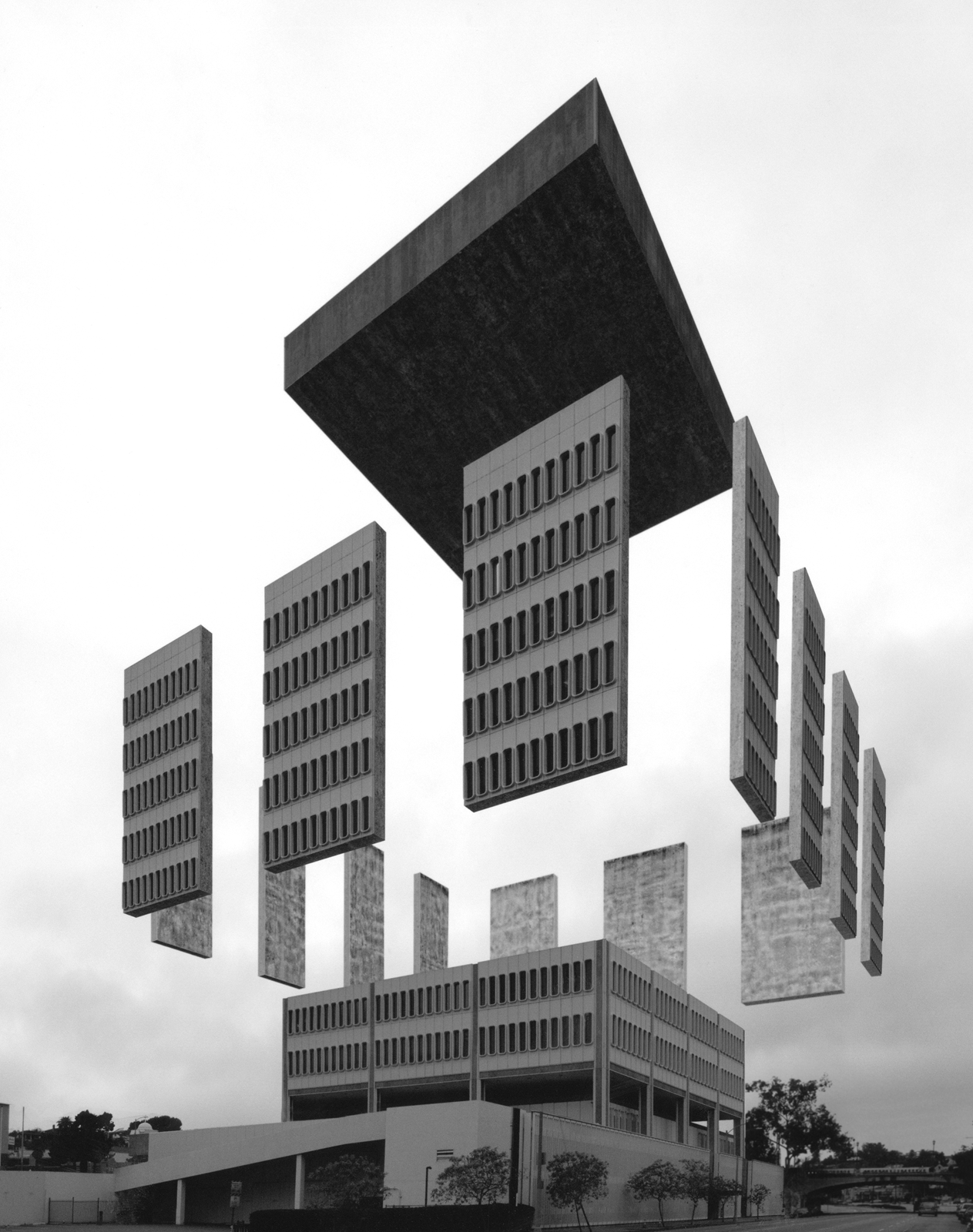 Dibujamos una línea nueva a partir de lo ya caminado. Un ejemplo claro es el trabajo del artista inglés Idris Khan, quien por medio de la increíble serie fotográfica de Bernd y Hilla Becher —realizada entre los años treinta y cuarenta— que muestra graneros, tanques de agua y edificios industriales, propone piezas con movimiento e increíble magnetismo. De igual forma, el impecable proyecto del arquitecto italiano Luca Galofaro nos envuelve en una tectónica sutil e históricamente contundente al ejecutar magistralmente la serie de montajes que incluye material fotográfico de la alemana Ursula Schulz-Dornburg, logrando edificios con lógicas casi contemporáneas. O bien, la simple manipulación digital para congelar la explosión de un edificio y construir abstracciones como las de Espen Dietrichson, artista noruego que refleja en sus piezas de manera absoluta el espacio dentro del contenedor arquitectónico, demostrando que lo que realmente importa es el vacío. Otra experiencia más es el trabajo del artista inglés Oliver Michaels, sus piezas de “Square in square” transmiten, a través de la construcción con partes de fotografías de arquitecturas posmodernas, una composición moderna. Irene García León, quien en sus increíbles y elegantes composiciones nos relata una historia con momentos casi cotidianos: un niño volando una cometa o simplemente un ave pendiente del horizonte, personajes de la imaginación enlazados a la imagen borrosa de una posible realidad. Un ejemplo más sería la increíble “Interacciones”, una serie del artista asturiano Dionisio González, quien mediante fotomontajes muestra lo que no es pero podría ser: la exaltación de la naturaleza con sutiles incrustaciones de volúmenes futuristas dentro de contextos cotidianos y épocas que se empalman dentro del mismo encuadre de manera asombrosa y fina.