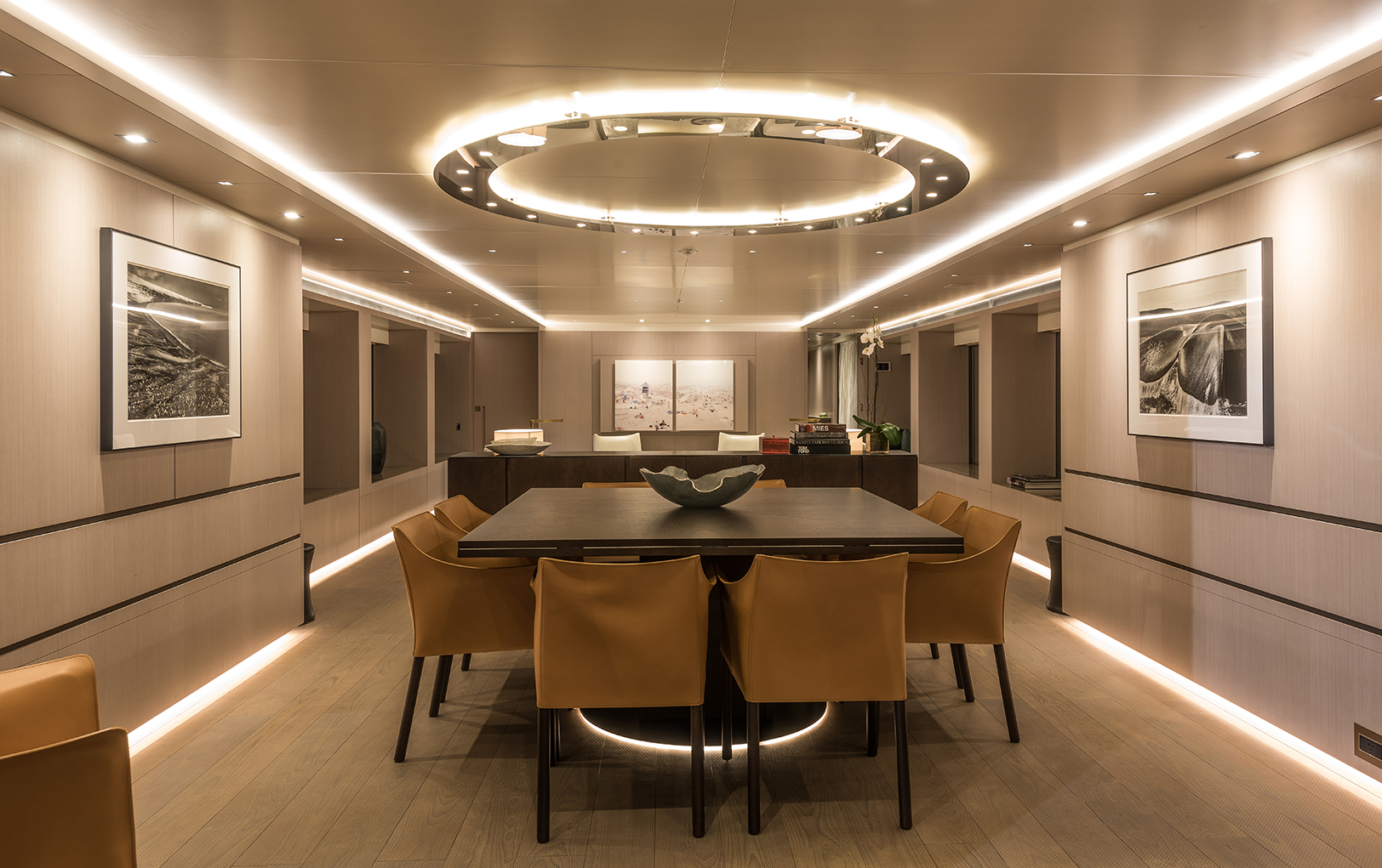 La premisa fue diseñar un segundo hogar para el cliente, que usa el Yate B-140 —cosa inusual— más de ocho meses al año para viajar por todo el mundo. Había de ser funcional y sobre todas las cosas cómodo y atemporal, de ahí su selección de colores y materiales.