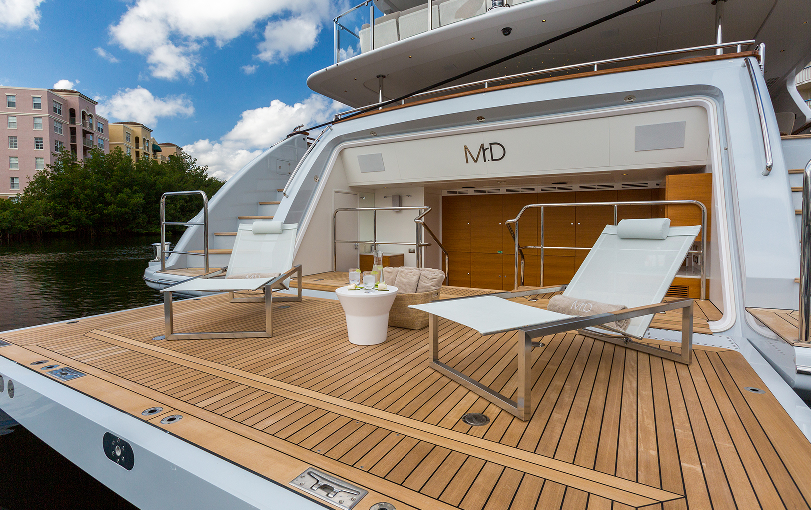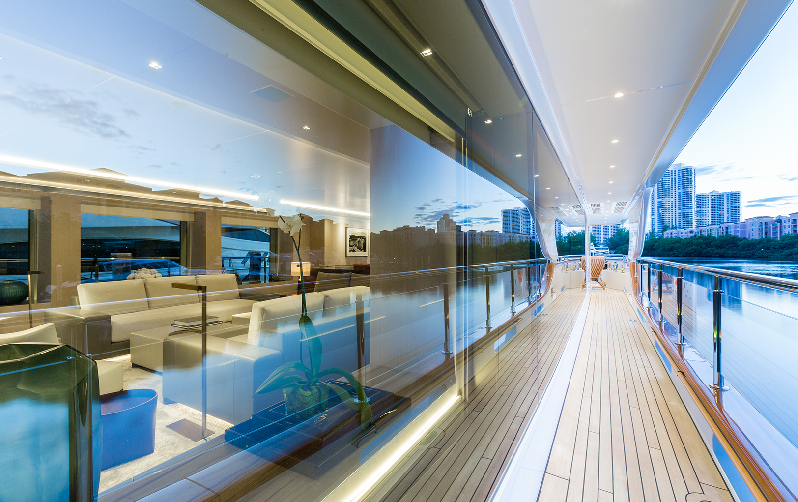 Los espacios fueron distribuidos pensando más en la idea de un hogar que en la de un barco: cuatro habitaciones en el lower deck, sala, comedor, cocina y master suite en el main deck, cuarto de TV, cuarto de masaje, e integrado a un gran espacio exterior (sun deck) destinado a ser un área completamente social. Entre sus muchos detalles, además incluye mobiliario de factura italiana, acabados finos, iluminación y funciones automáticas.